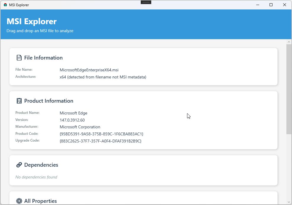 Perfect for developers, IT professionals, and anyone who needs to inspect MSI packages quickly and efficiently.